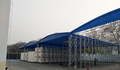高效專業的推拉伸縮棚服務、規(guī)范化的伸縮棚管理,保證工周期短,工期交付準時。